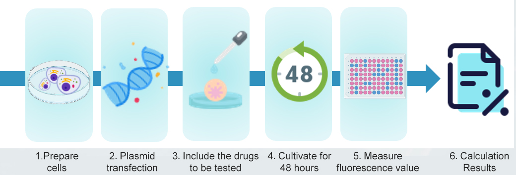 This plasmid system does not require virus involvement during drug screening, freeing experiments from the need to isolate test strains. It eliminates the necessity for high biosafety level laboratories (P2/P3/P4), enabling cellular-level drug screening: