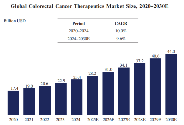 The global market for colorectal cancer therapies reached USD 25.4 billion in 2024, highlighting a significant opportunity for innovative treatments.