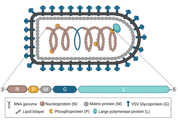Figure 1. Structure and Genome of Vesicular Stomatitis Virus (VSV)